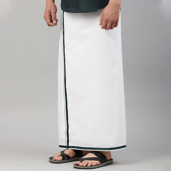 White solid cotton dhoti has a green border